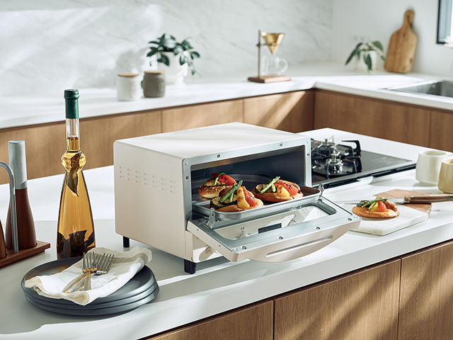 トーストが4枚焼ける広い庫内。リベイクモード搭載。